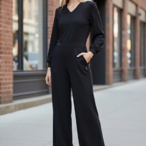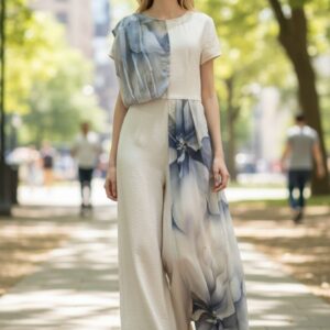 Elegant Tailored Jumpsuit with pleated chiffon overlay