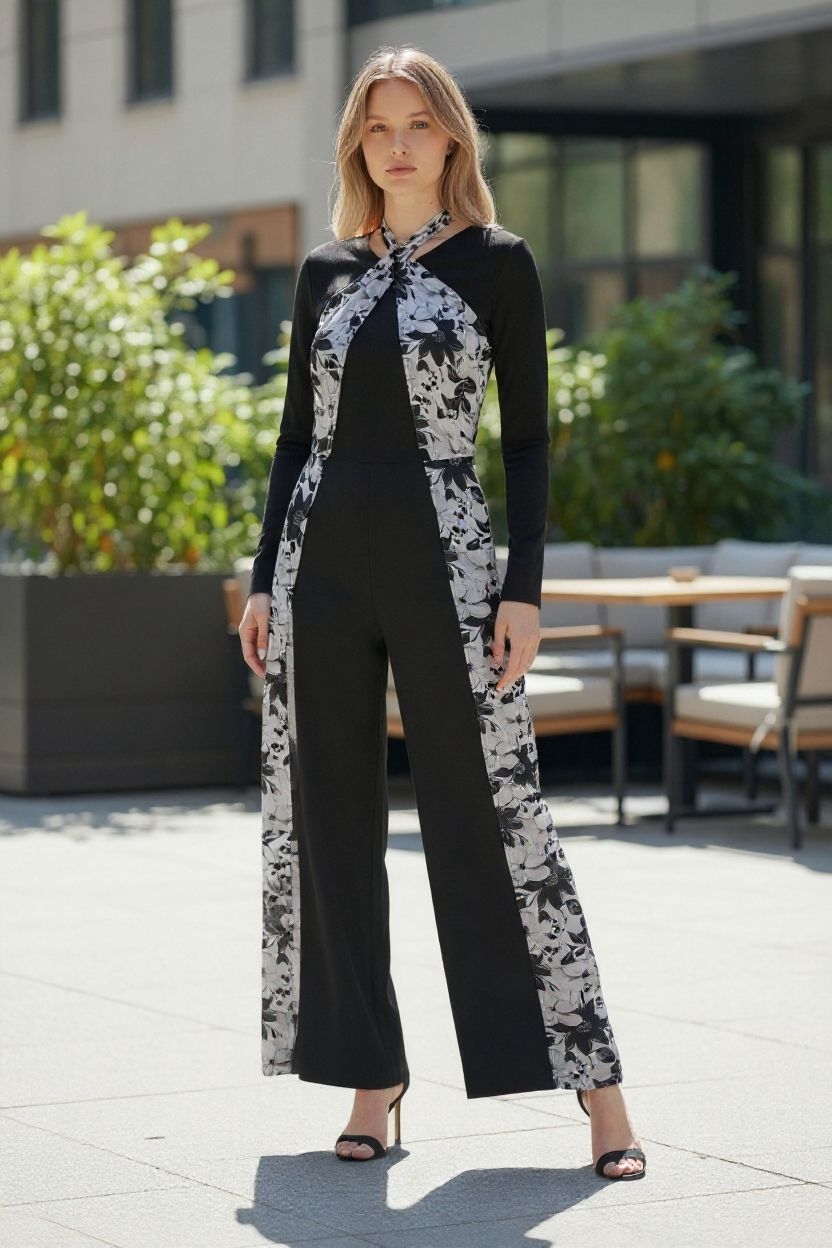 Elegant Tailored Jumpsuit with attached chiffon Halter.