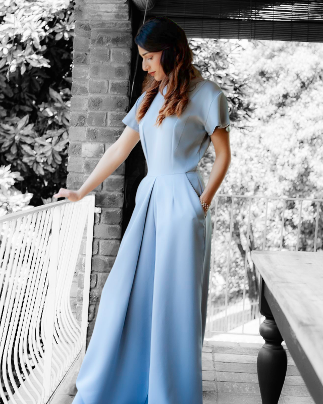 Wide leg tailored Jumpsuit with a pleat detail in the front.